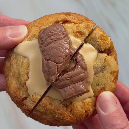 A festive favourite packed with golden honeycomb Crunchie chunks and a gooey Caramello centre topped with a caramello santa. Buttery, chewy, and full of caramel crunch — the perfect Christmas cookie indulgence.